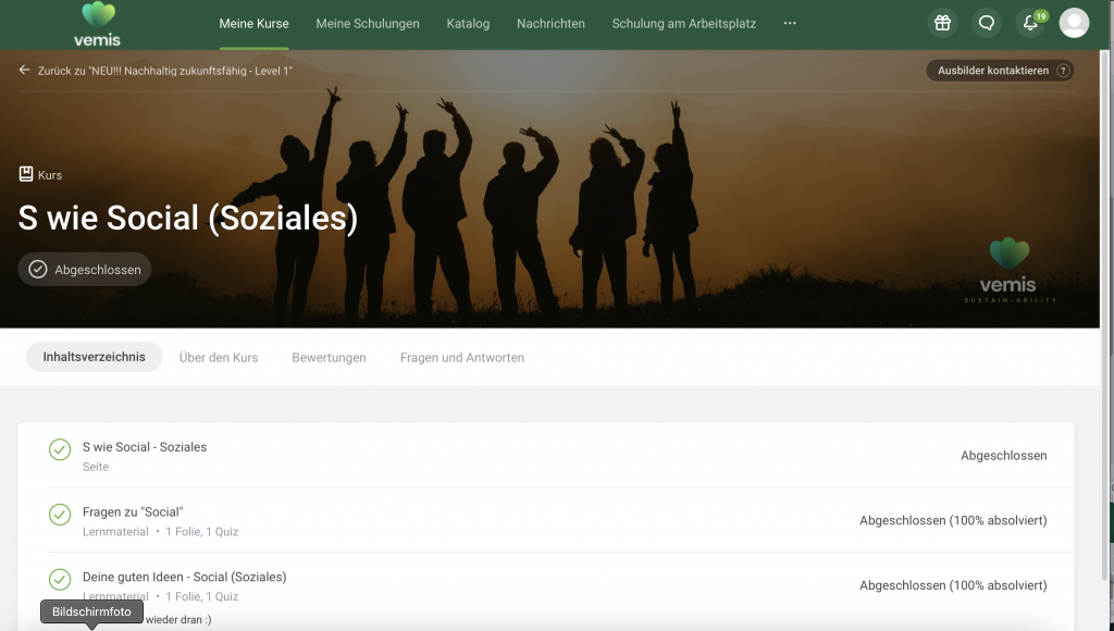 Die Vemis-Lernplattform bietet Online-Schulungen zum Thema Nachhaltigkeit und sammelt Daten zum Wissensstand und zu den Ideen der Mitarbeitenden.